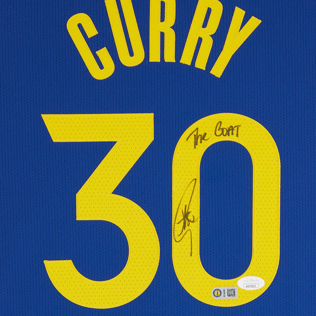 Celebrate one of the greatest players in NBA history with this Stephen Curry autographed Golden State Warriors Icon Edition Authentic Jersey. Hand-signed by the legendary point guard, this Royal Icon Edition jersey features a bold āThe GOATā inscription, making it a standout addition to any basketball memorabilia collection.